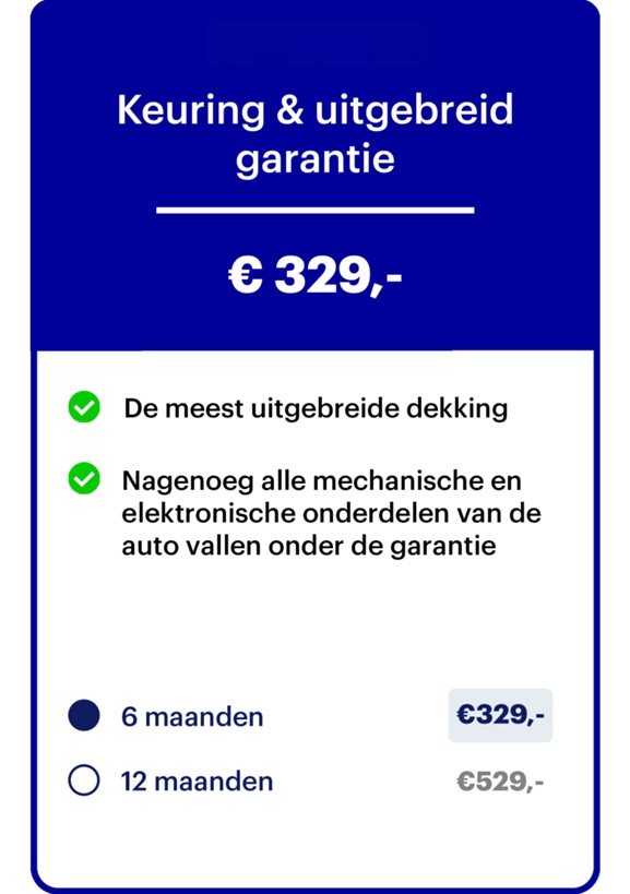 Geen probleem. Ongeacht waar de auto te koop staat, wij bieden jou altijd een garantievoorstel aan. Zo bieden we je naast onze aankoopkeuring de mogelijkheid om jouw zekerheid door te trekken tot maximaal 12 maanden ná aankoop.